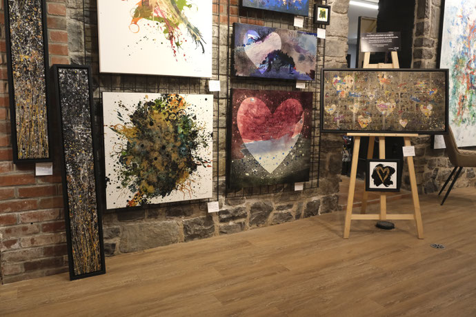 Les collections d'Esther Garneau explorent des thématiques universelles qui parlent à tous les visiteurs, quelle que soit leur origine. Les Cœurs, Les Abstraits, Les Paysages Abstraits : autant de séries qui offrent différentes clés de lecture émotionnelle.